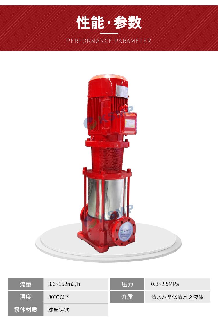 本公司在原有立式多级泵基础上根据对消防泵的要求进行开发出的新一代XBD型中低压消防泵组产品。该系列泵在性能、结构、材料和配套上均满足消防泵的要求。由于采用水力模型,因此该系列泵具有满足用户要求;采用立式泵结构,具有效率高、性能范围广的特点,可更好地节省占地面积的优点;采用优质轴承和优质电机,使泵运行更为安全可靠、噪音低、振动小;采用水力平衡轴向力,减少平衡鼓,可使运行更为平稳。其轴封有机械密封和填料密封两种形式。