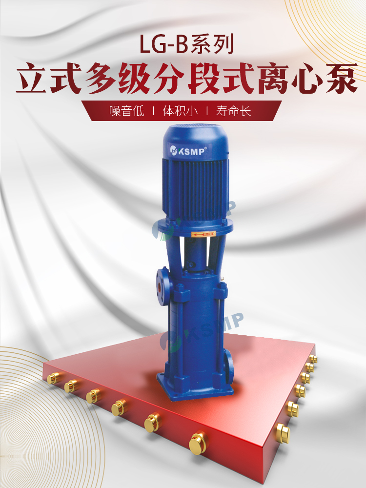 LG-B系立式、单吸、多级分段式便拆式离心泵是根据高层建筑恒压供水及消防行业的实际需要开发的新一代给水产品。该泵采用国内水力模型,经过本厂技术人员的精心设计,因此该泵效率高、性能稳定、噪音低、使用寿命长、外形美观、占地面积少、维修方便、重量轻等优点。LG-B型泵有电机和泵联结而成,泵轴与电机轴用 联轴器联结,确保泵与电机同轴是泵运行平稳、噪音低等现象。电机为Y型三相异步电机,方便用户更换,整体为刚性连接,使用时无需校正。轴封采用机械密封,泵为便拆式结构方便更换机械密封。泵旋转方向从电机端向下看为顺时针方向转动。