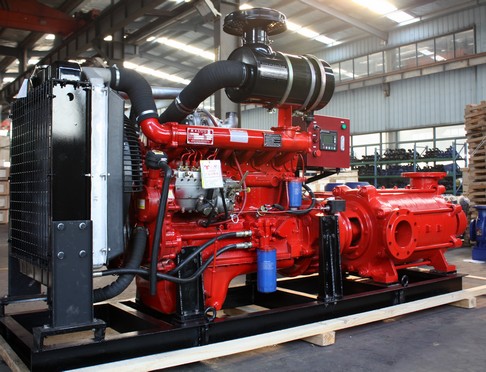 XBC型全自动柴油机消防泵组作为一种固定式消防灭火设备已经广泛应用于消防分流,尤其是在没有电源或电源(市电)不正常等意外情况下的消防给水。机组中所配的水泵为卧式单级、多级消防专用泵,所配的柴油机均为国内内燃机行业骨干企业生产的495、4135、X6135、12V135等系列机型,根据用户需要亦可配置其它柴油机作为动力机。主要由柴油机、消防泵、联接装置、油箱、散热器、蓄电池组、智能型全自动控制屏等组成。